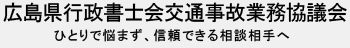 広島県行政書士会交通事故業務協議会は、交通事故にあって困っていらっしゃる方々をサポートする目的で設立された、広島県行政書士会の承認を受けた行政書士の集団です。「まだ痛みがあるのに治療費の支払い中止を言われた。」「後遺障害をきちんと認定されたい」「相手が保険に入っていない」「休業損害が認められない」など交通事故でお困りの方、お気軽にご相談ください。 |