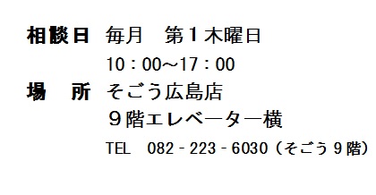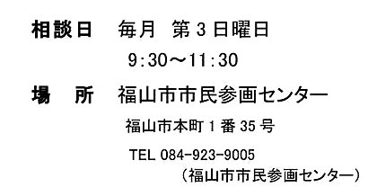 広島県行政書士会交通事故協議会では、広島県の各地にて無料相談会を実施しています。 交通事故に関するご相談は、各地の無料相談会をご利用ください。 |